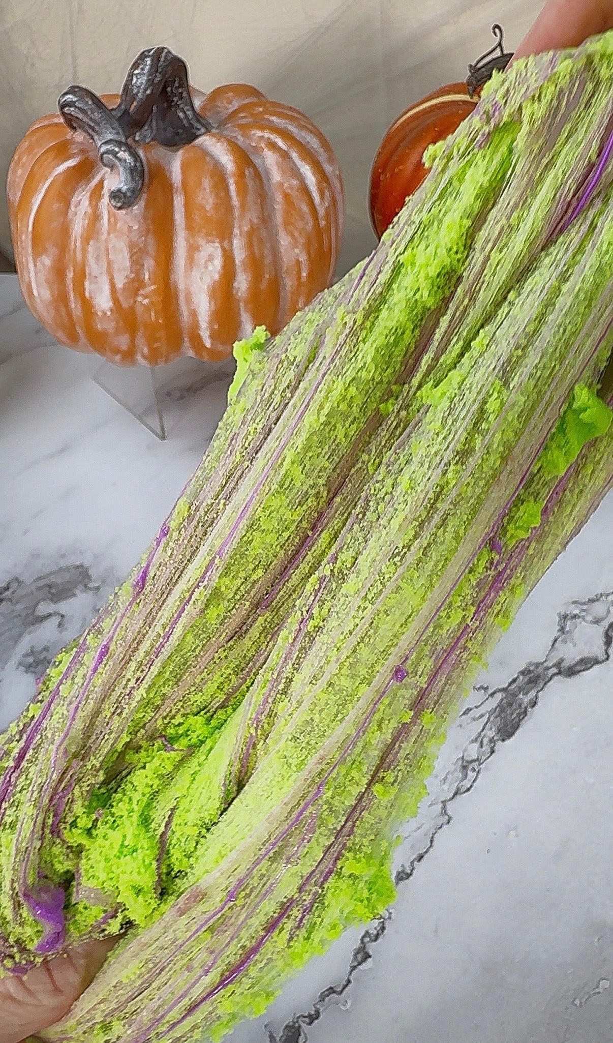 Satisfy your slime cravings with Beetle Goo! This neon green cloud slime is perfect for mixing and swirling with the purple thick and glossy mixture, creating a drizzly cloud dough. Perfect for spooky season, let your imagination go wild with this fun and contrasting color combo.