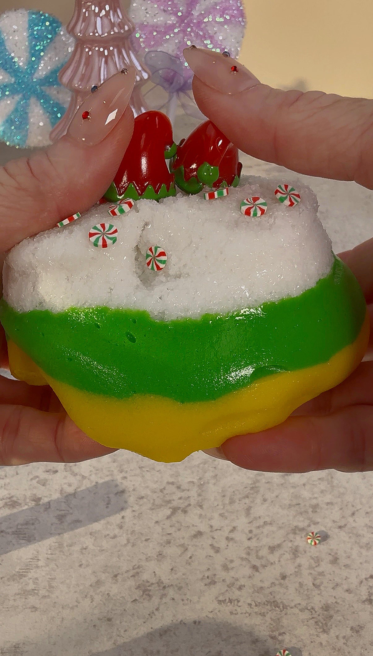 Meet Buddy, our latest holiday movie-inspired slime! Layered with 2 layers of sand slime and one layer of snow fizz, this slime is perfect for inflating, bubble-blasting, and satisfying pops. Grab it before it's gone!