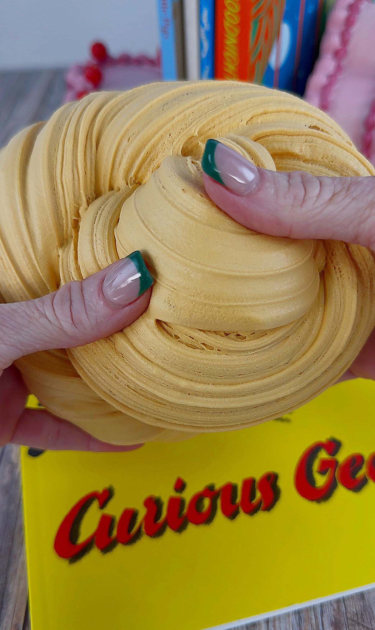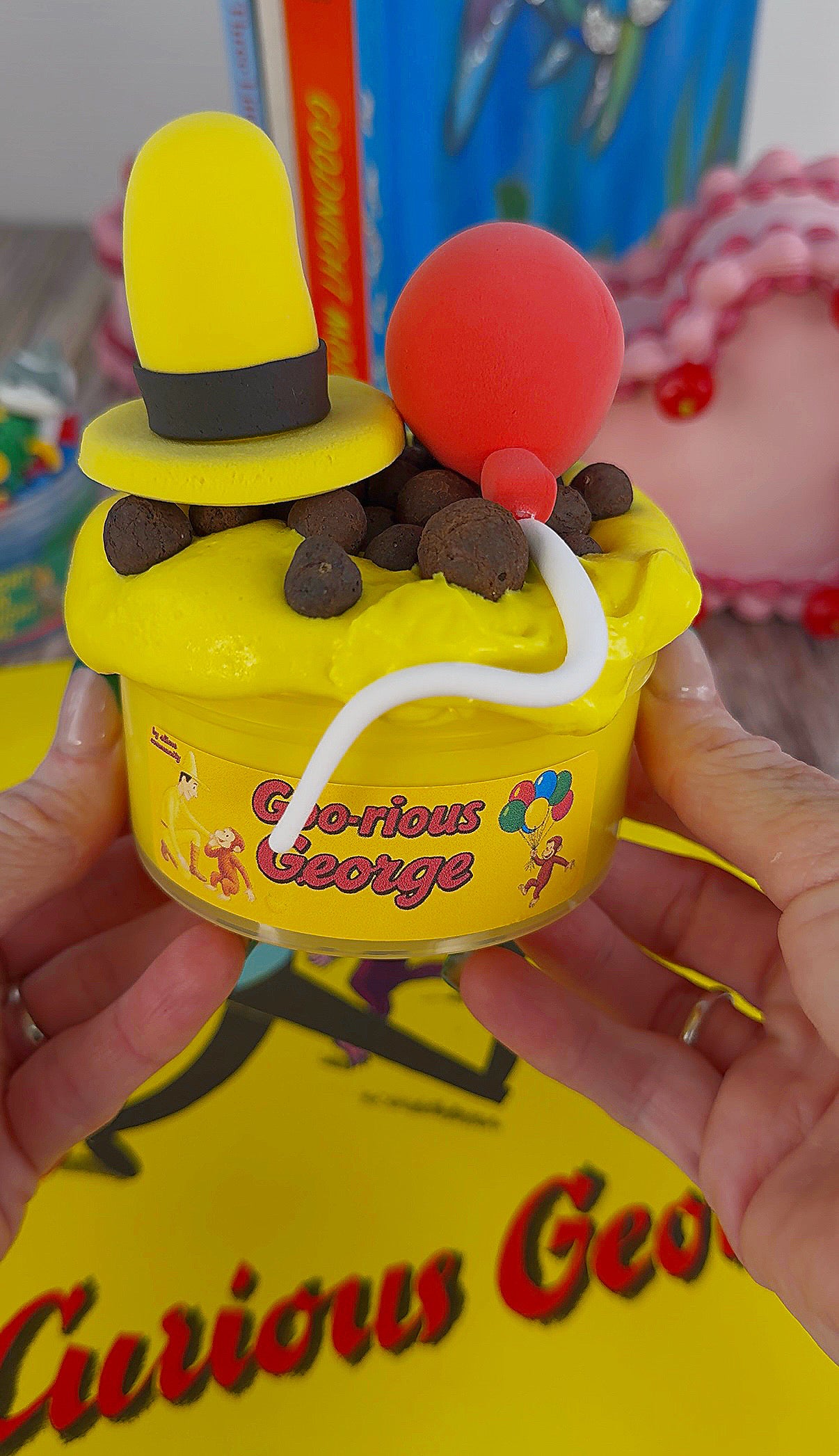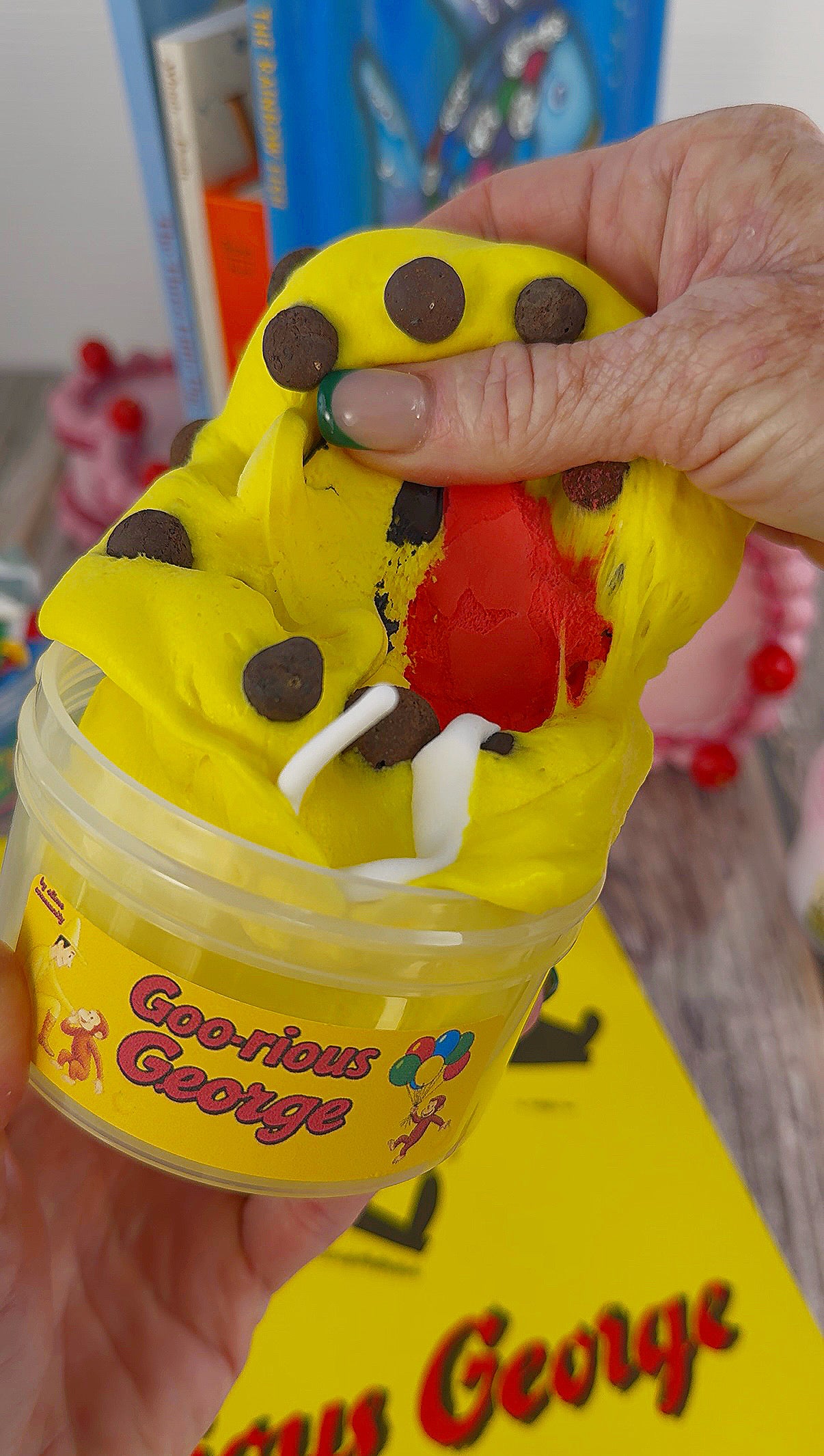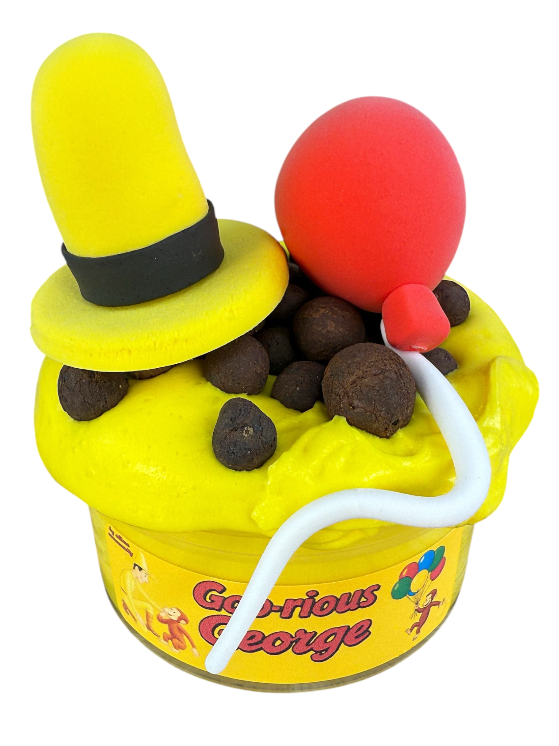 Experience the ultimate Snowbutter slime with Goo-rious George. Our perfected formula creates a soft, creamy texture that can be endlessly inflated for entertainment. Accented with pebbles for added crunch and clay DIYs for an adorable touch, this happy yellow slime takes inspiration from the beloved Curious George. The clay balloon and yellow hat add an extra dose of cuteness to this delightful creation.