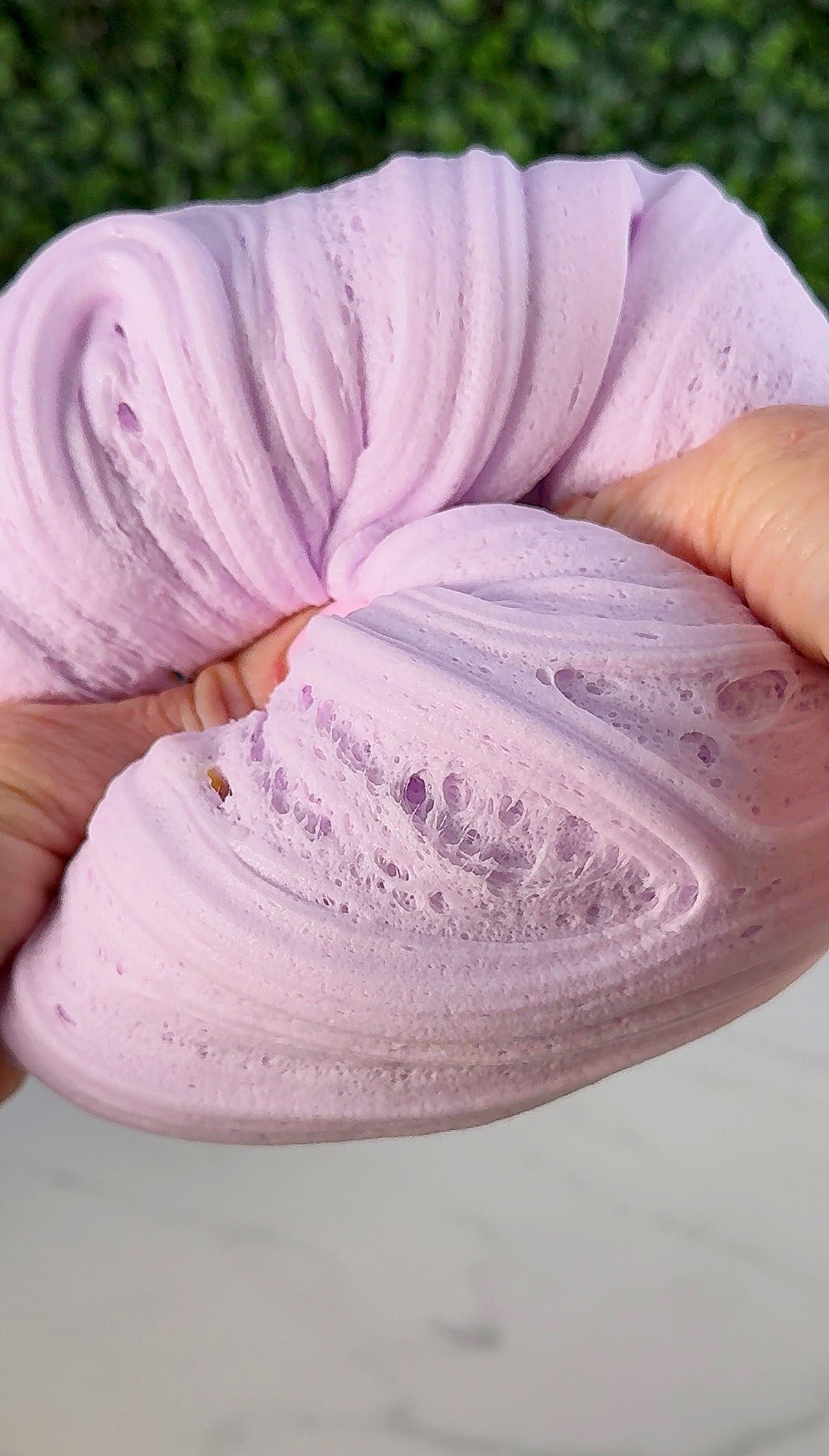Get ready to take a trip down memory lane with this unique marshmallow bar! Combining the beloved scents of Lucky Charms cereal and marshmallows, this two toned, swirled clay bar is topped with clay mallows and lucky charms fimos that melt into the base, creating a light purple soft, squishy, and sizzly treat.
