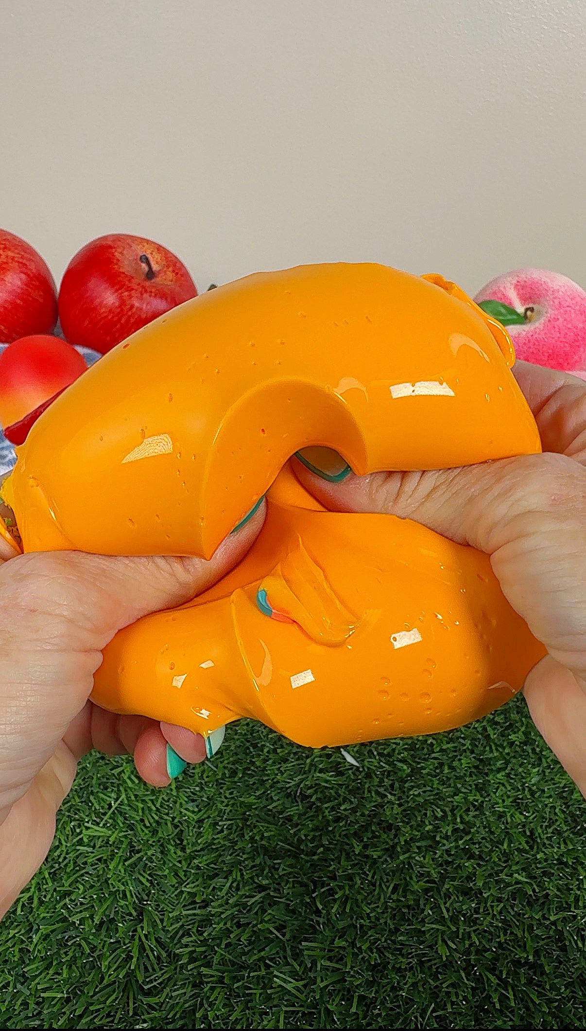 Get ready to stick your hands into a tropical paradise with our Mango slime! This thick, glossy delight delivers bubble pops and pokes that make unbelievable asmr. Plus, it’s topped with an airbrushed wax-dipped DIY that’s just as pretty as it is fun! Mango madness, here we come! 🍑✨