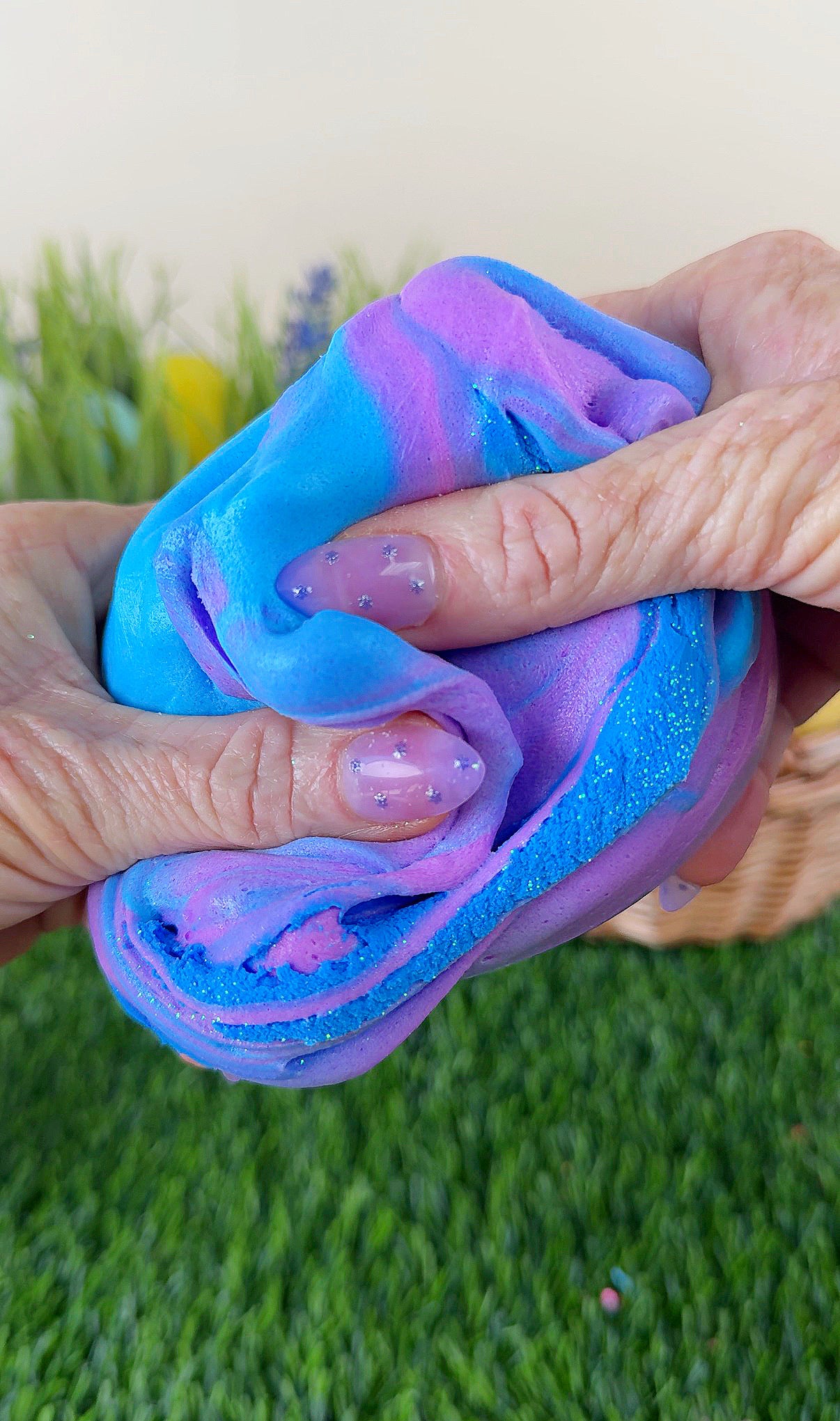 Enhance your springtime experience with these adorable Marshmallow Bunnies-Blue Raspberry! Two sparkly blue bunnies sit atop a generous swirl of thick, creamy blue and purple slime, crafted with our special butter texture for the ultimate squishy and satisfying pop.