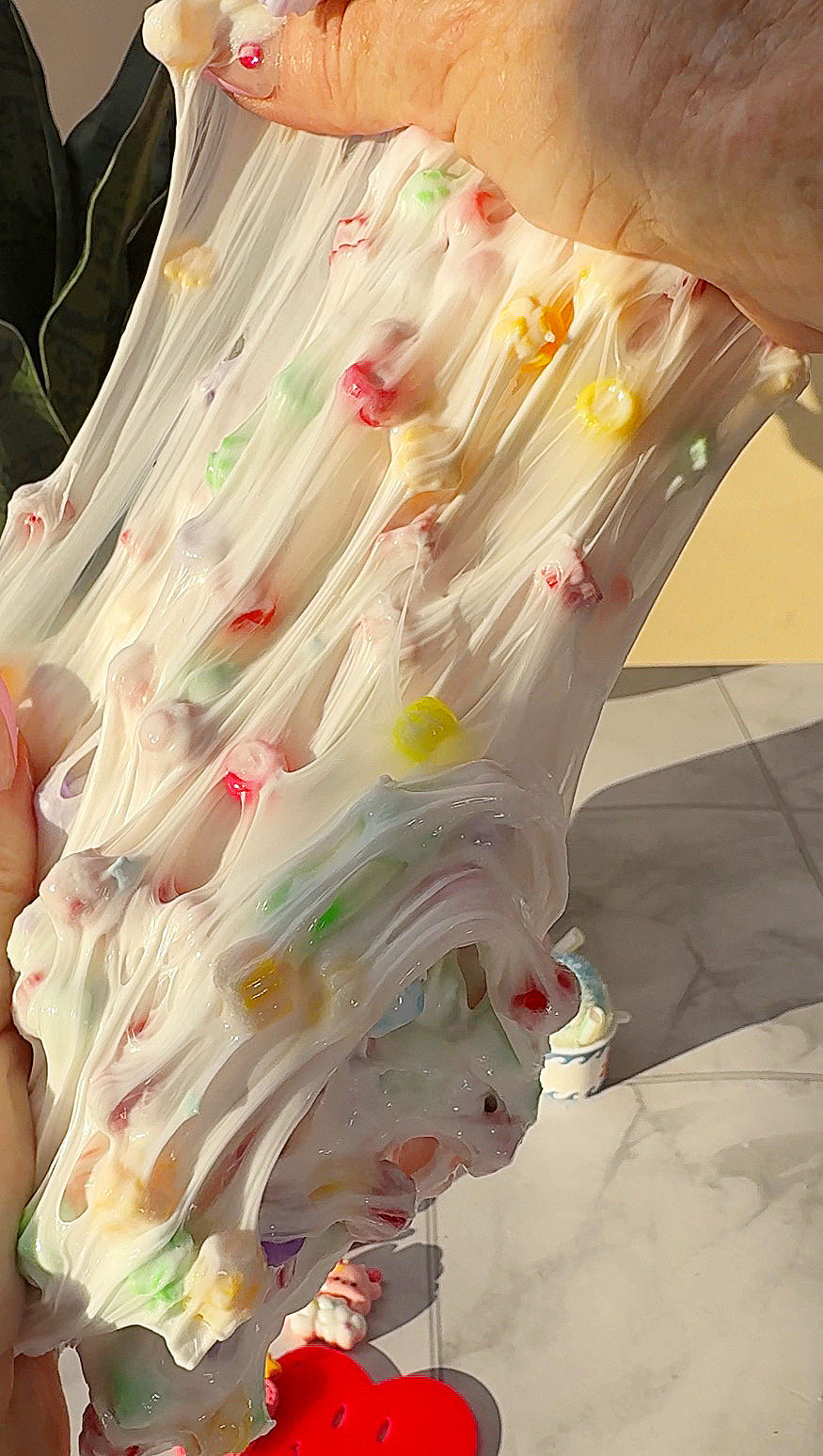 An amazing slime that has great sparkle and shine as you mix the slime! The pops and crackle ASMR is amazing! It is one of my favorite textures.