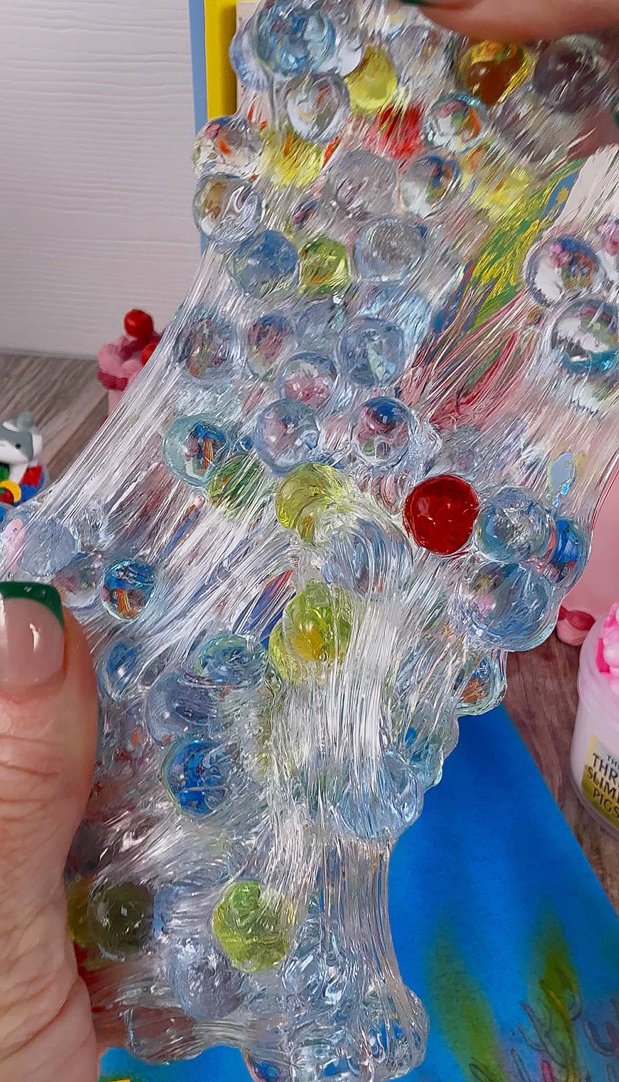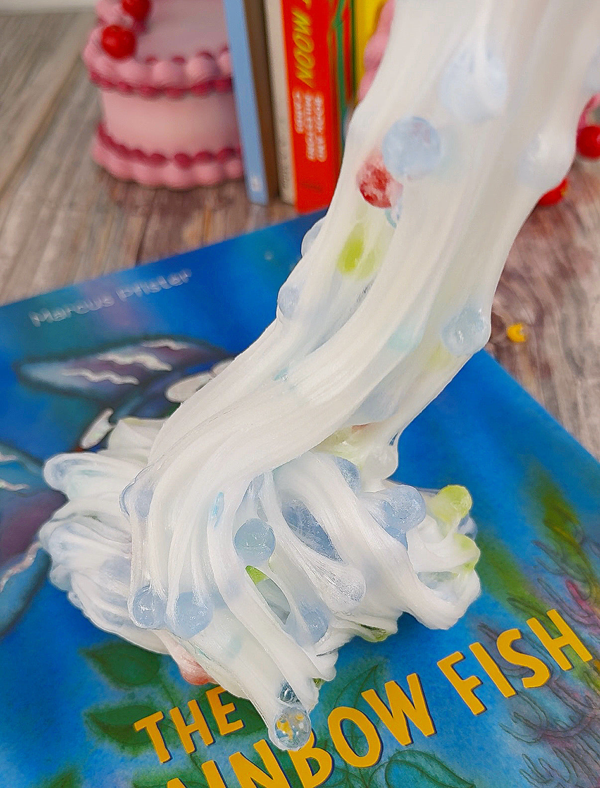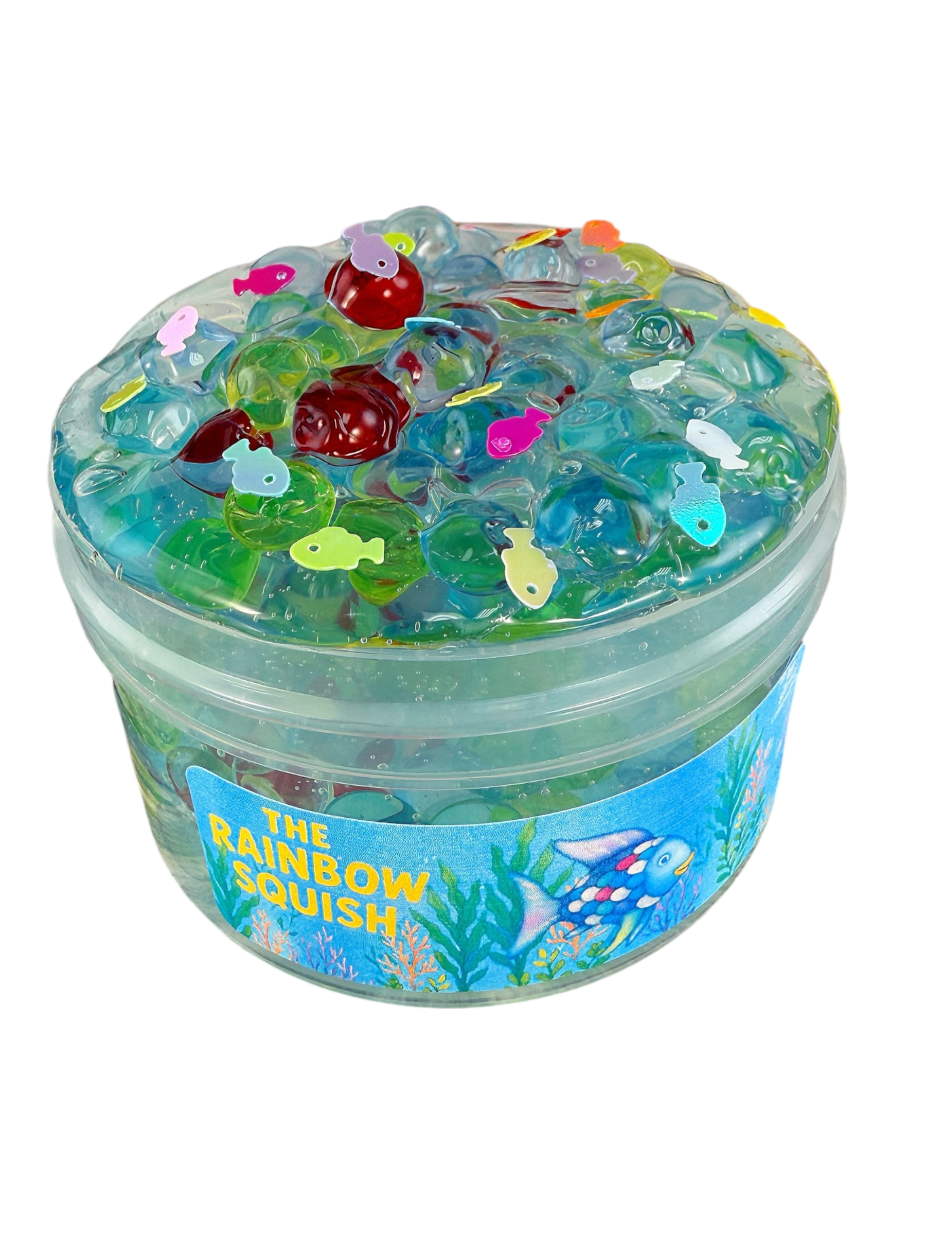 Get ready to be dazzled by Rainbow Squish! Our clear and colorful bubble beads will mesmerize you as you play with this beautiful slime. The coated clear base creates a thick and non-tacky texture, while the beads make satisfying crunching and croaking noises. Prepare for a sensory experience like no other!