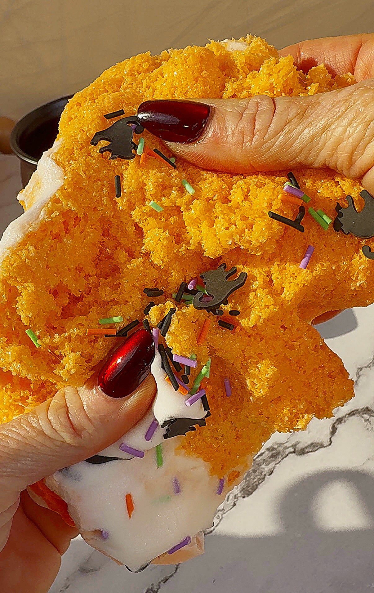 Spooktacular sugar cookie-influenced slime--so many awesome textures to combine! Crunchy snow fizz, creamy butter slime, and velvety clay come together for a delightful blend of bubbly crunchiness.