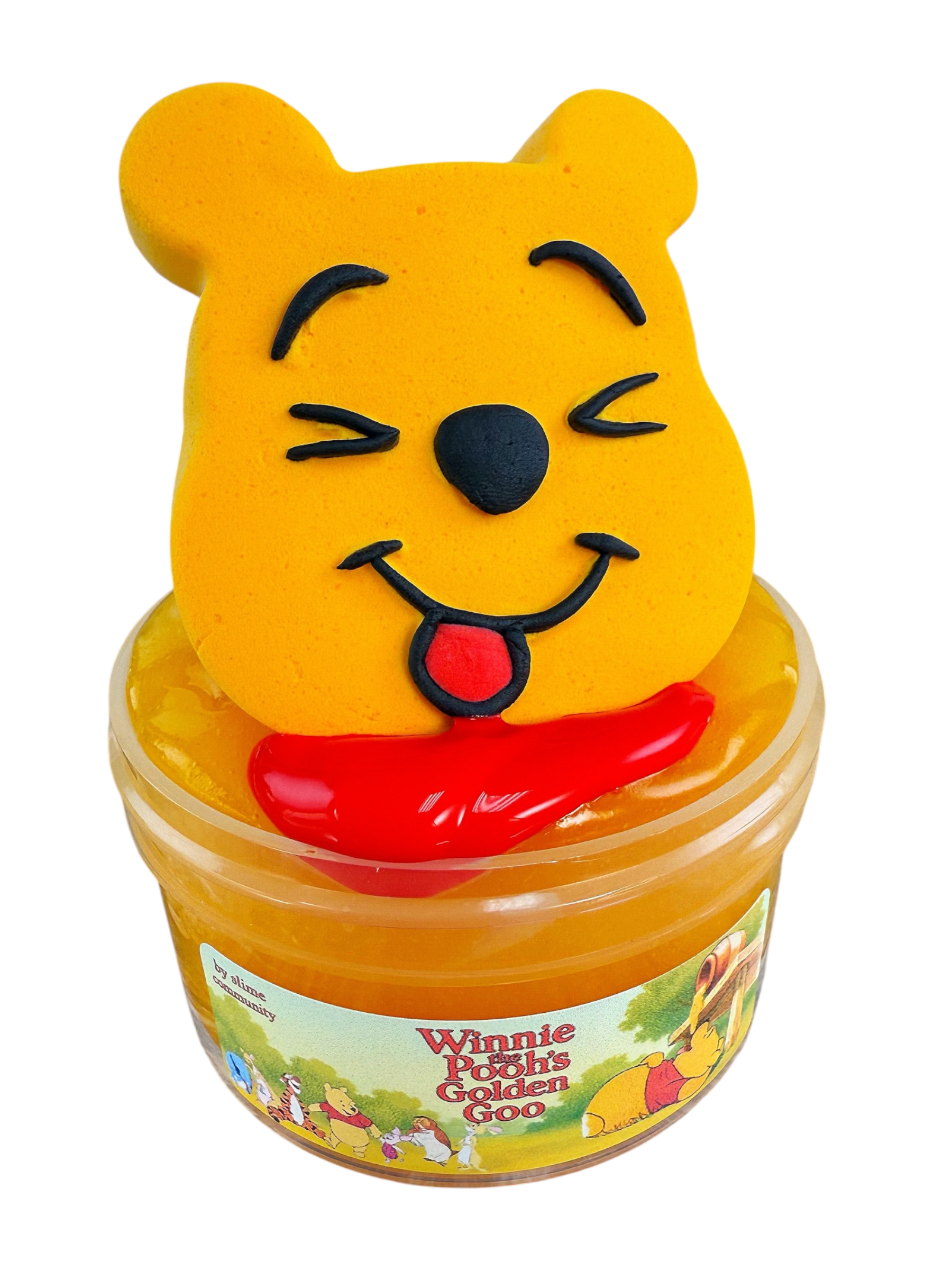 Get ready to experience the ultimate squishy sensation with Winnie The Pooh's Golden Goo! Our jell coat slime is non-tacky and thick, giving it a gummy bear-like feel that everyone loves.  But that's not all - this slime also comes with a cute clay Pooh figure and  1 oz. of red thick & glossy slime to mimic his iconic shirt. Perfect for bubble pops and endless squishing!